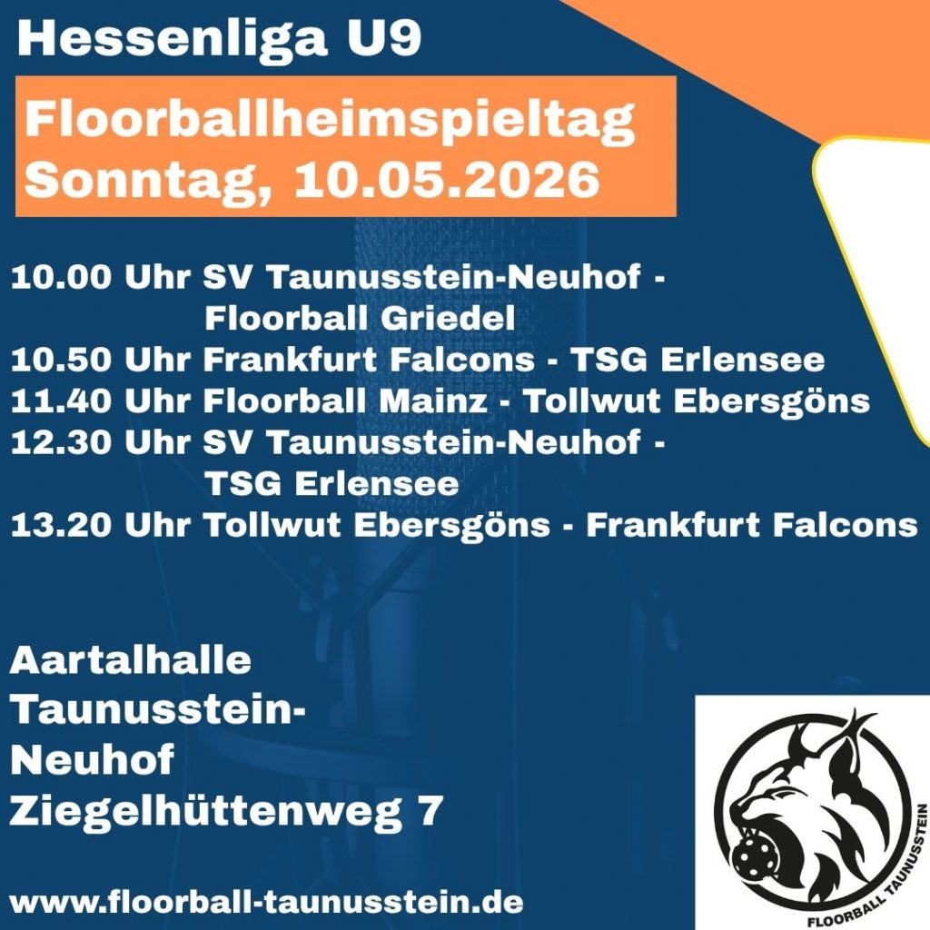 Am 10.05.2026 begrüßen wir die Teams aus Frankfurt, Ebersgöns, Griedel, Erlensee und Mainz zum U9-Heimspieltag in der Aartalhalle Taunusstein-Neuhof.