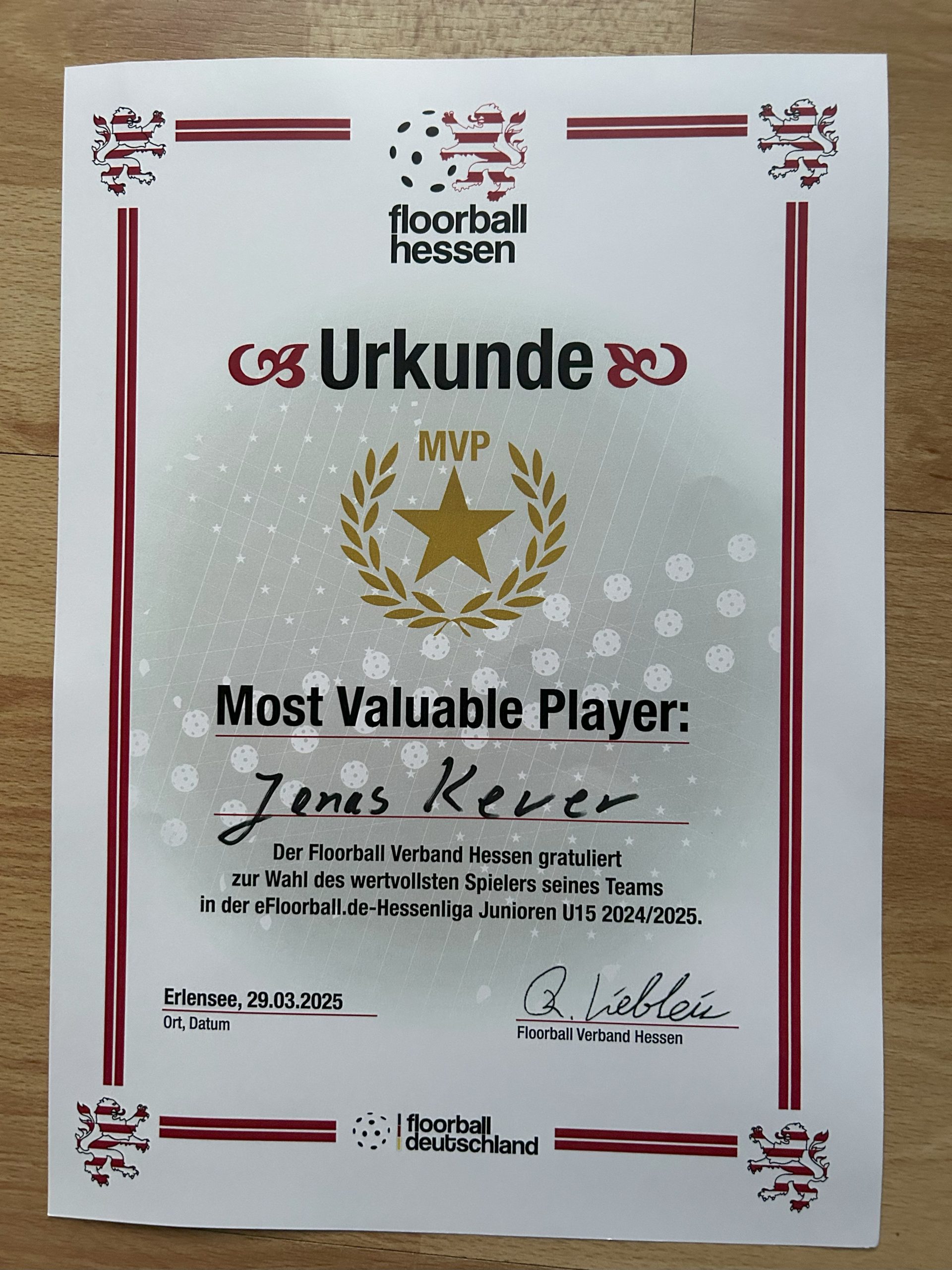 Jonas Kever most valuable player (MVP)