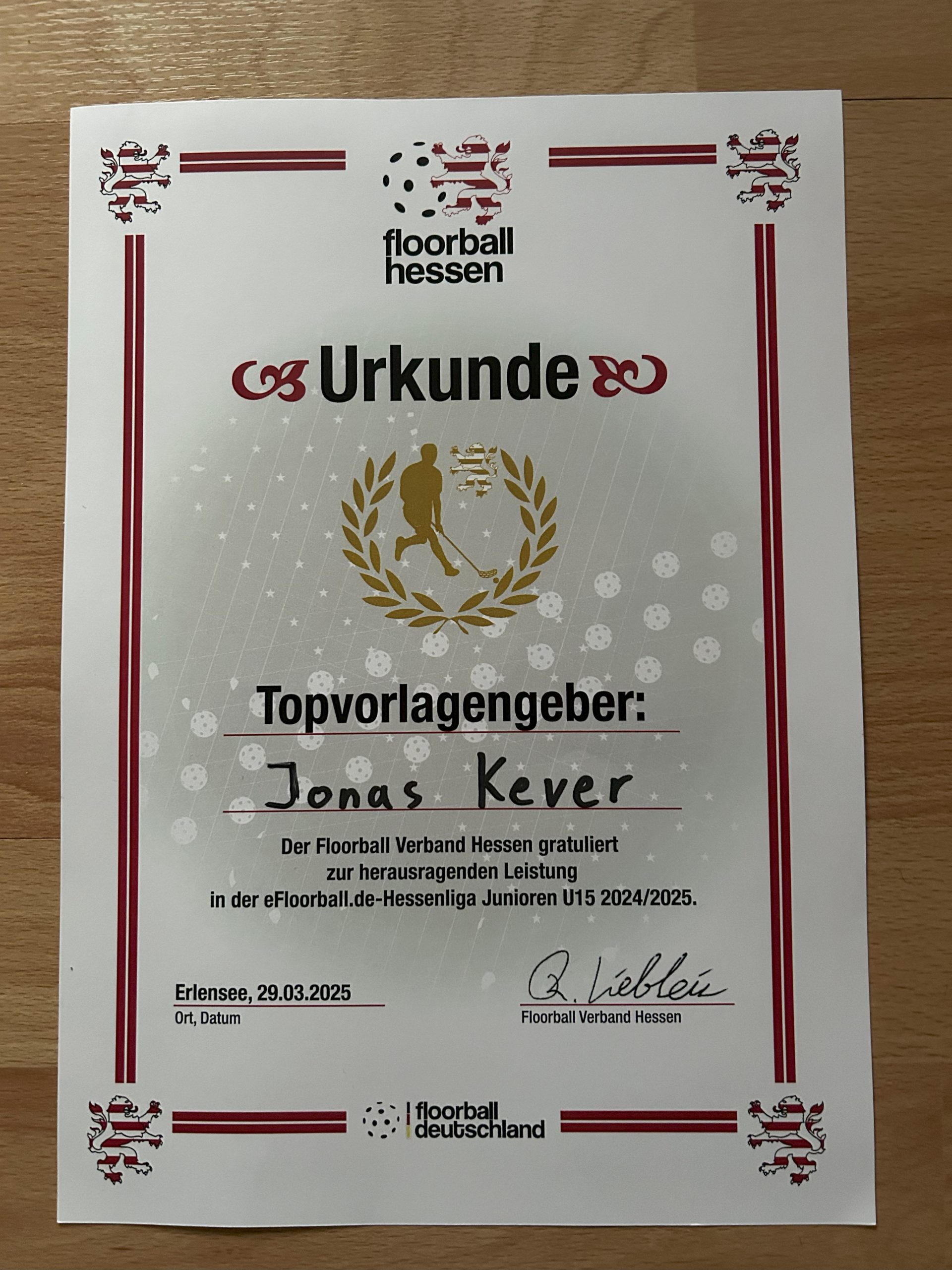 Malte Speck most valuable player U15-Hessenliga (MVP)